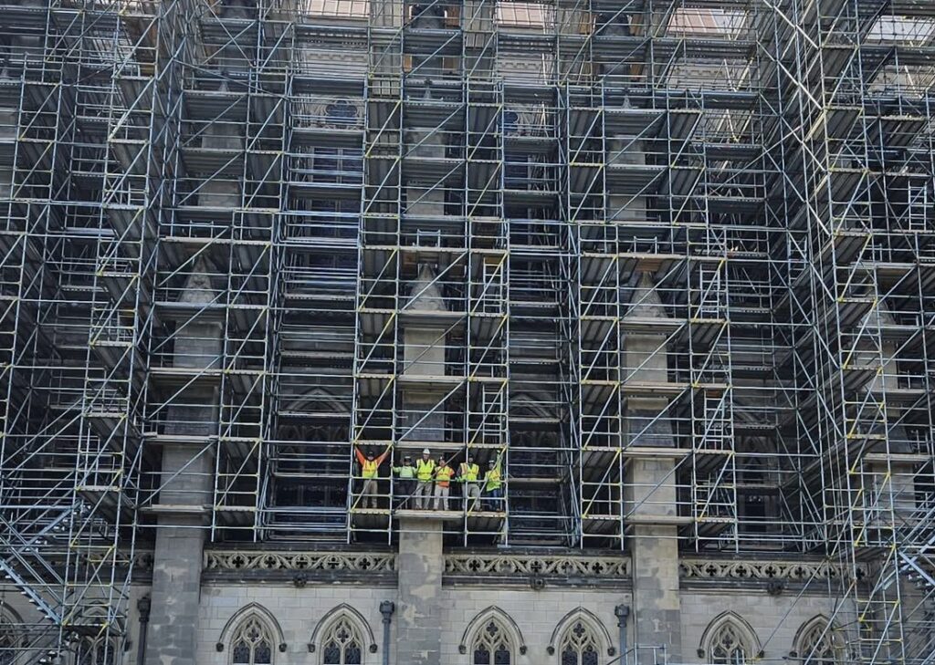 The crew erecting the scaffold were the first people to get physically near all of that damaged stonework, so they were under strict orders to not touch anything.