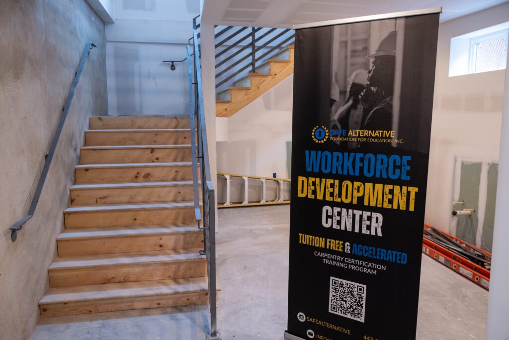 A project of the nonprofit Safe Alternative Foundation for Education, the 3,200-square-foot center on South Payson Street includes a carpentry workshop and classroom spaces and will deliver National Center for Construction Education (NCCER) accredited training programs in construction trades. The organization expects to train a minimum of 100 people at the center annually.